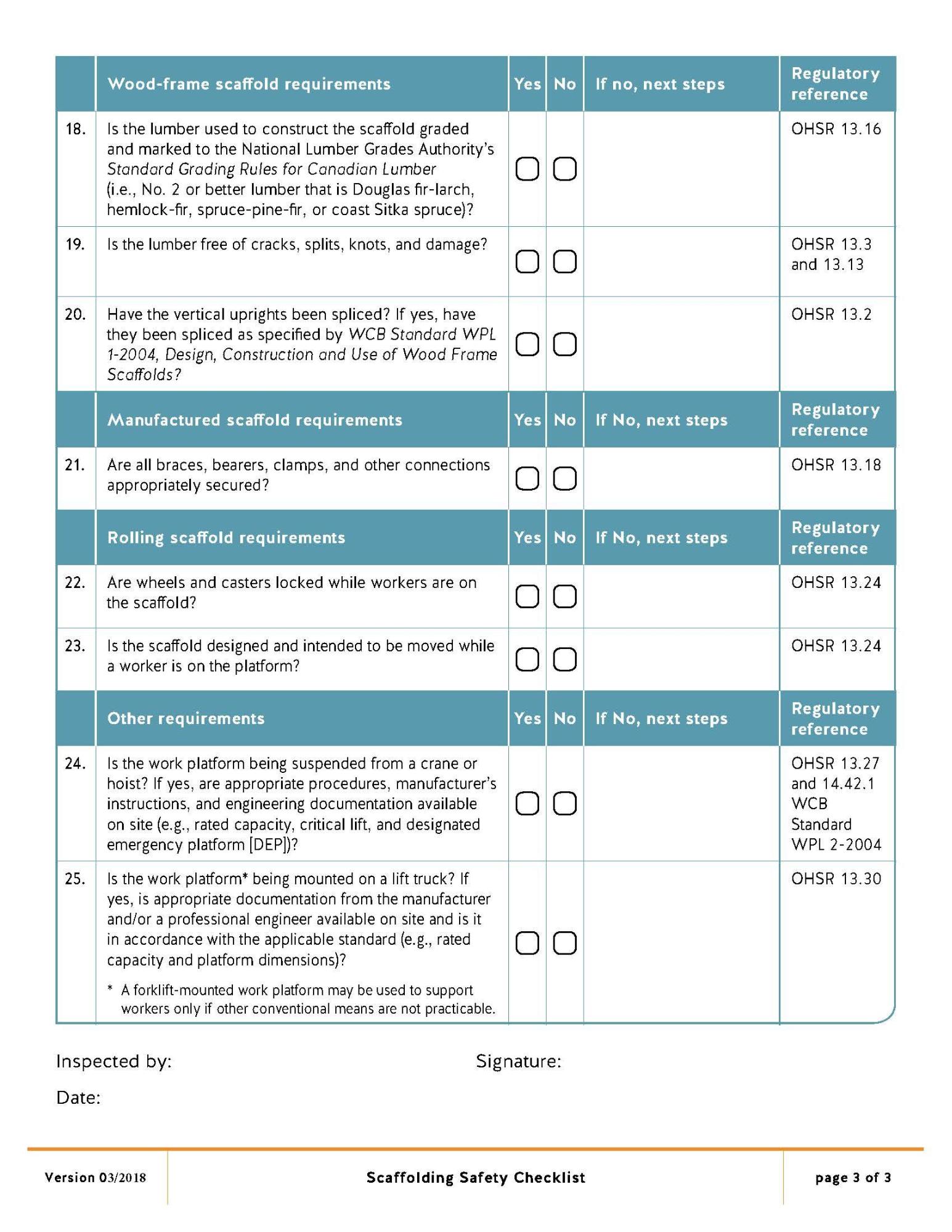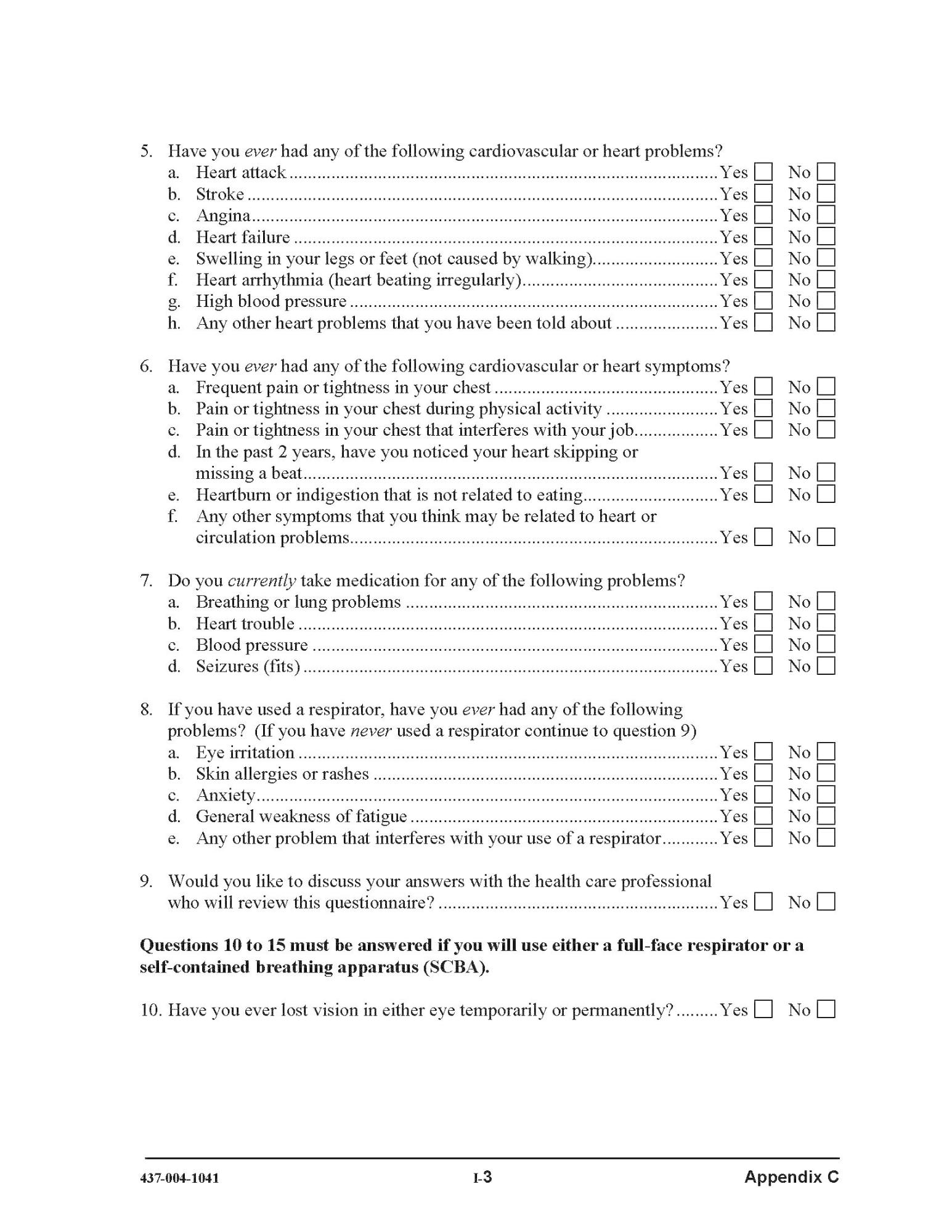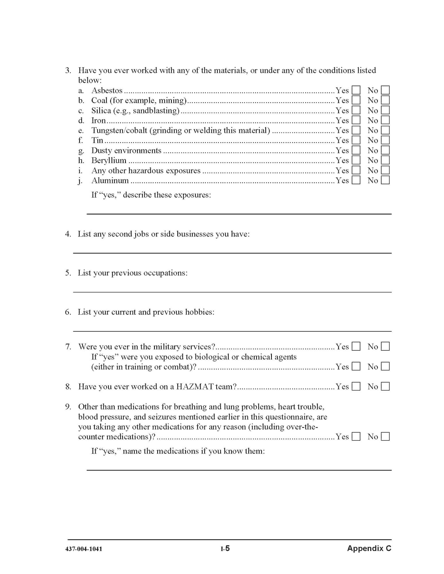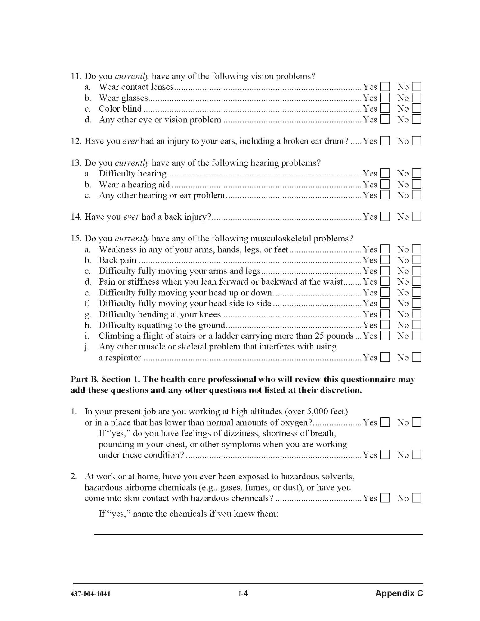Unsafe working condition: [ ] yes [ ] no. If yes, please describe in detail: