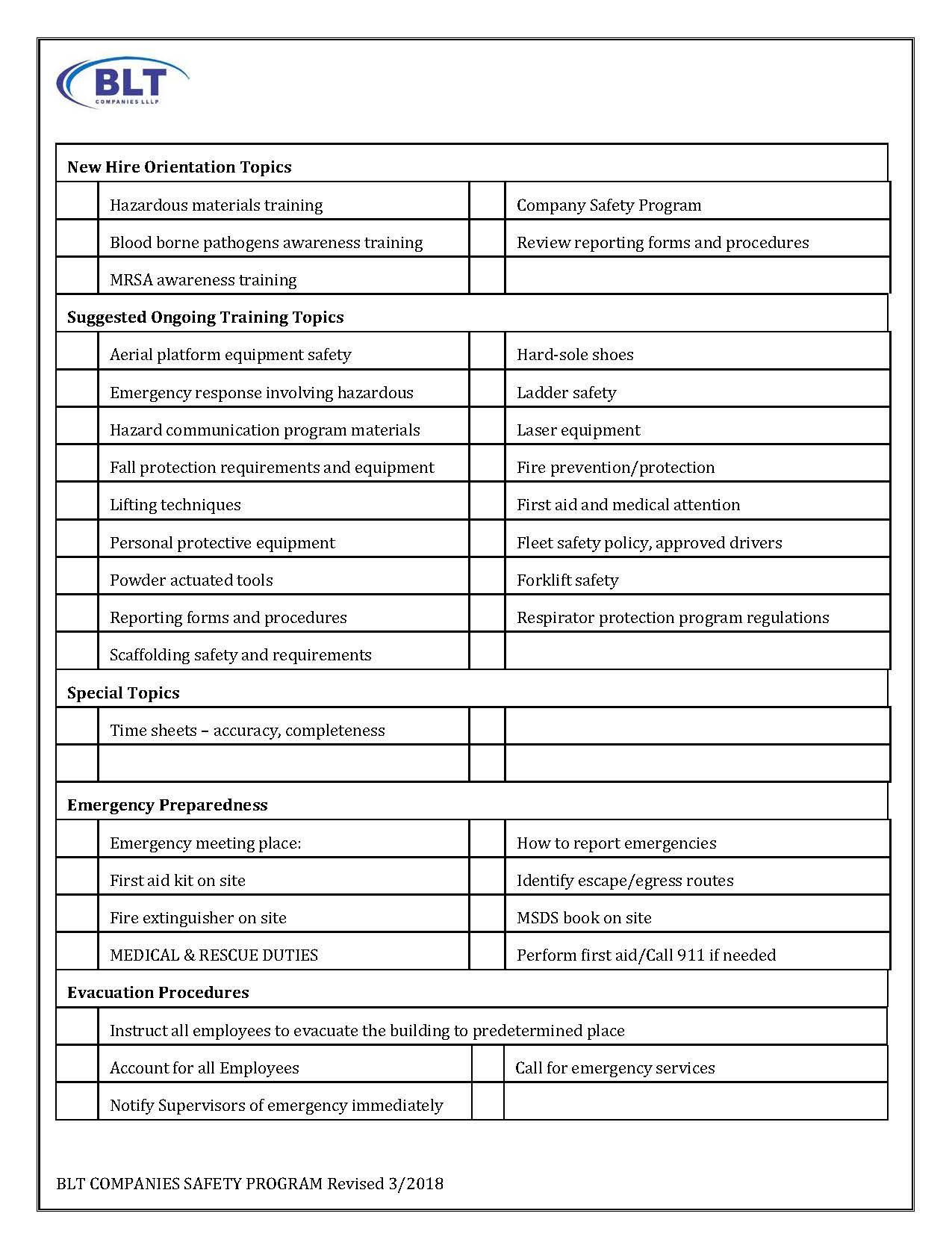 - I hereby acknowledge that I have been given a copy of BLT Companies’ Safety & Employee Health Program.