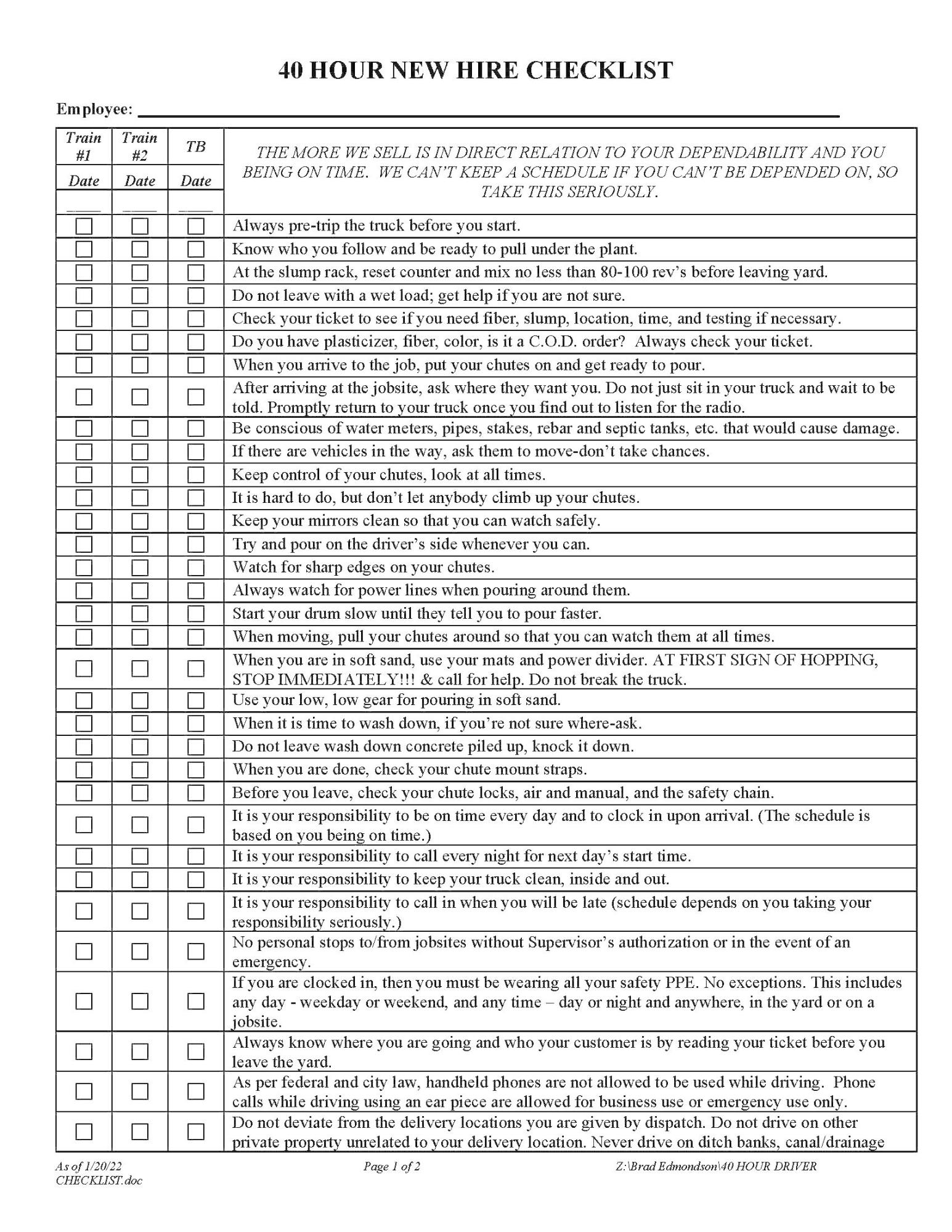- SAFETY & EMPLOYEE FORMS (TO FOLLOW)