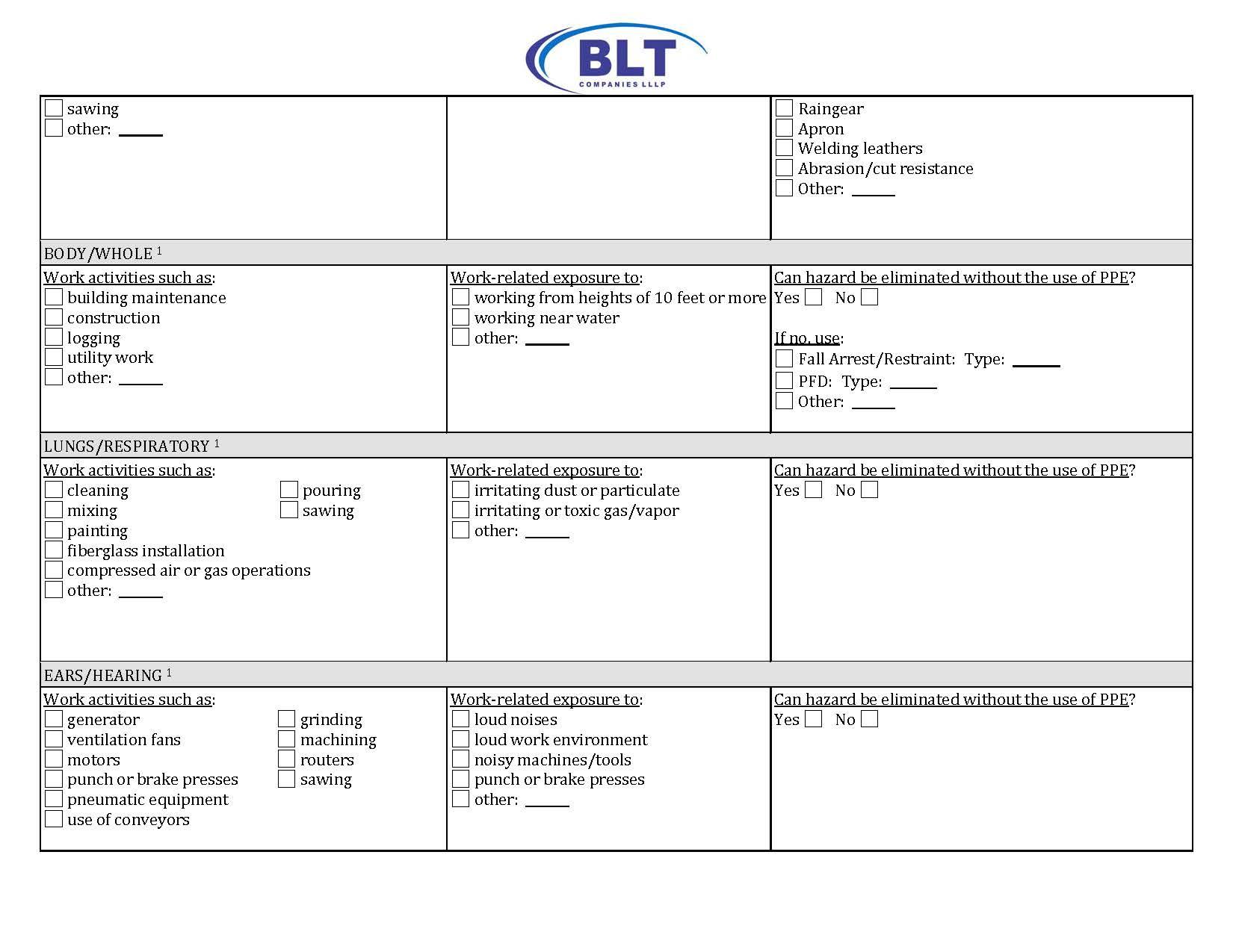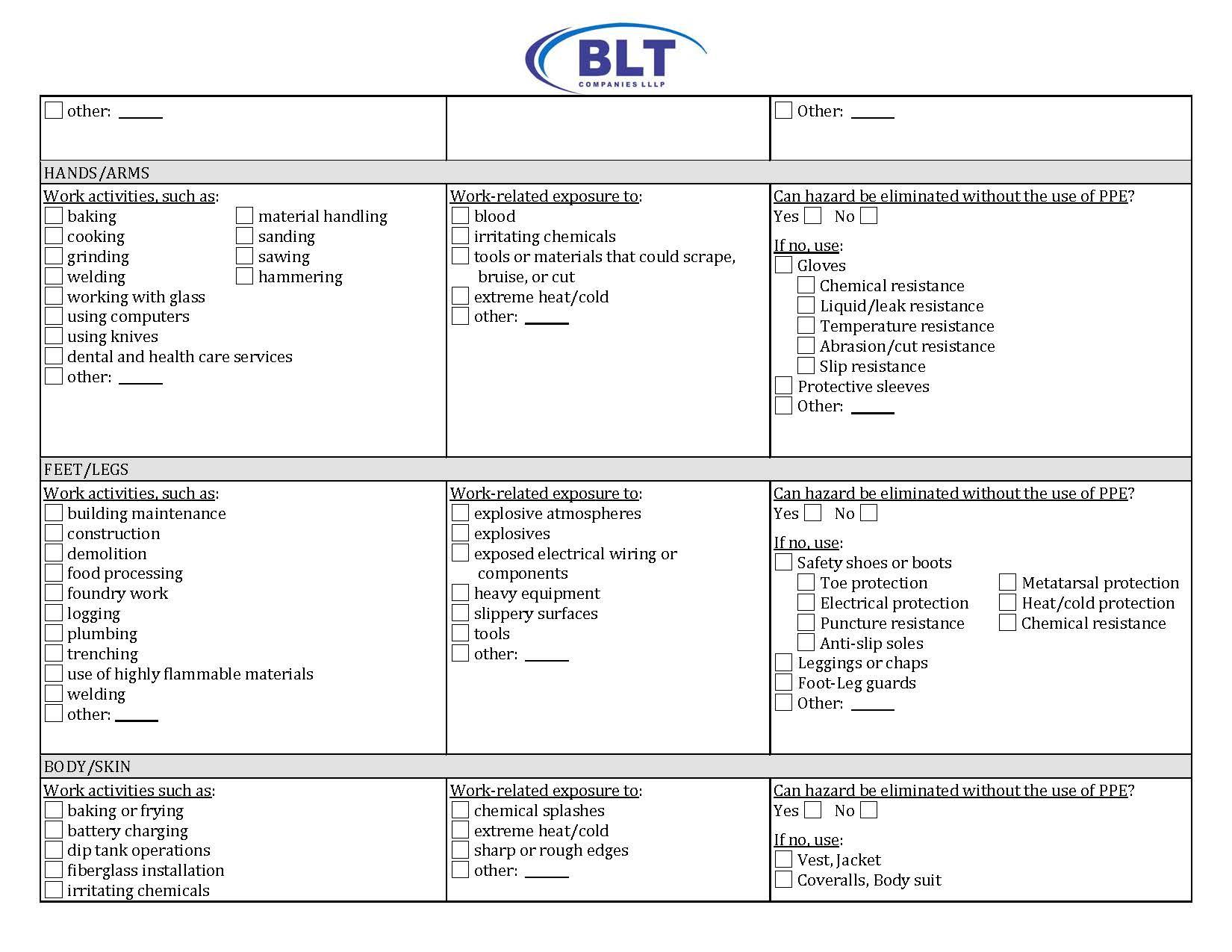 - I understand it is a condition of employment with BLT Companies that I read, understand and abide by the policies and procedures established by the Company in its written Safety & Employee Health Program.