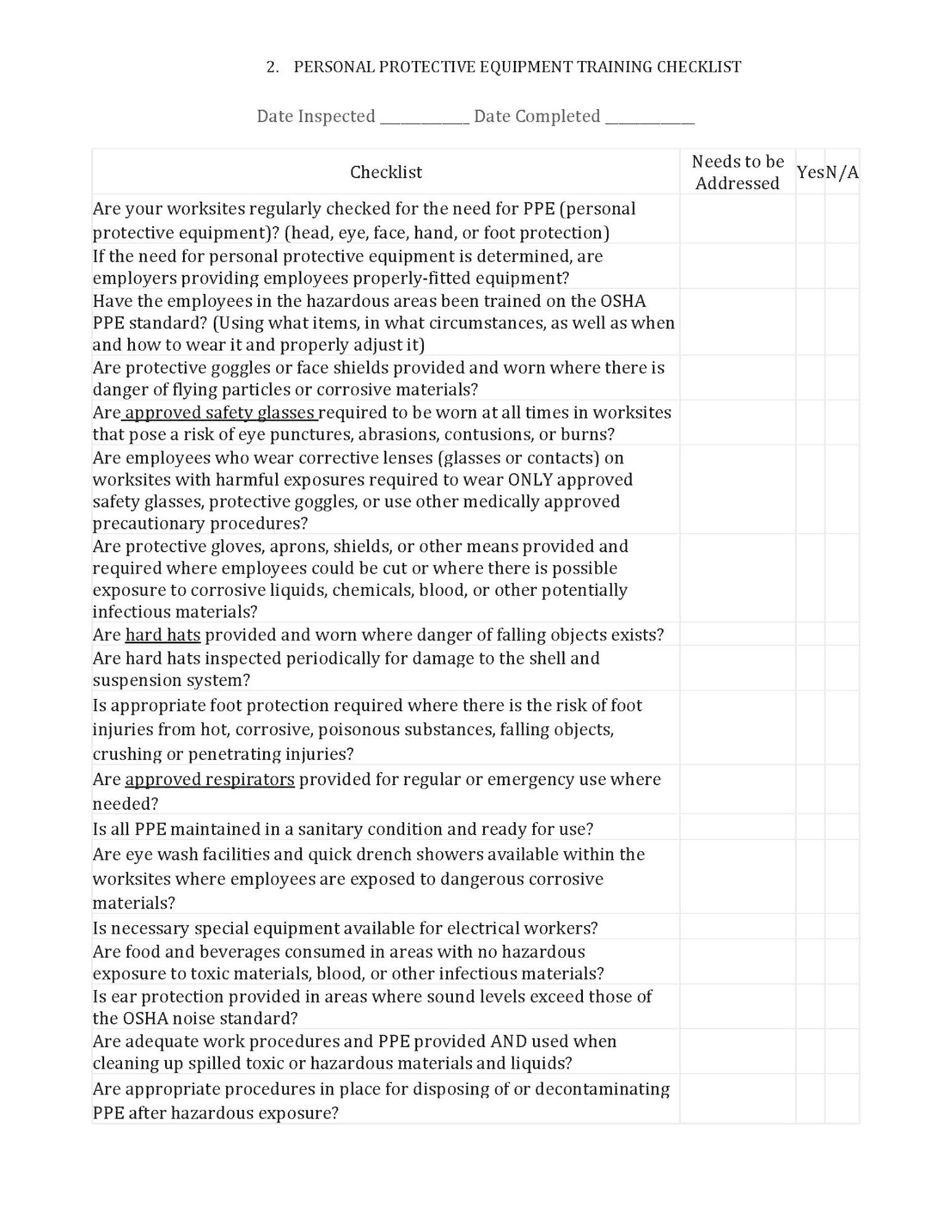 - PERSONAL PROTECTIVE EQUIPMENT ASSESSMENT, SELECTION AND TRAINING